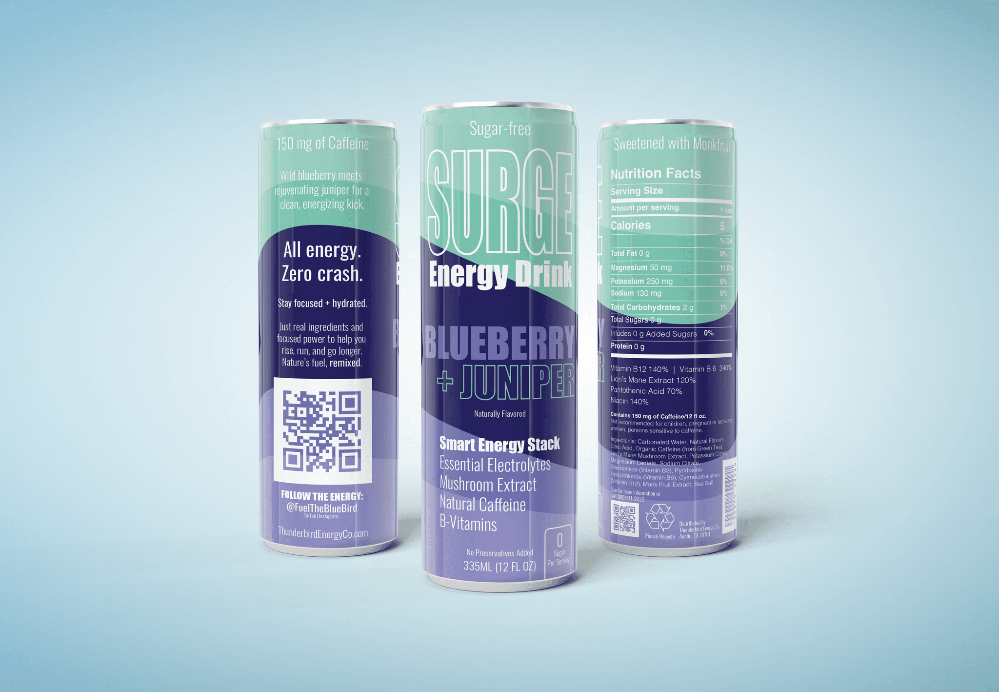 SURGE stands out with a clean design and a natural, premium look. Organic flavors and balanced visuals, its a refreshing take on what an energy drink can be – Clean energy without all the artificial nonsense.